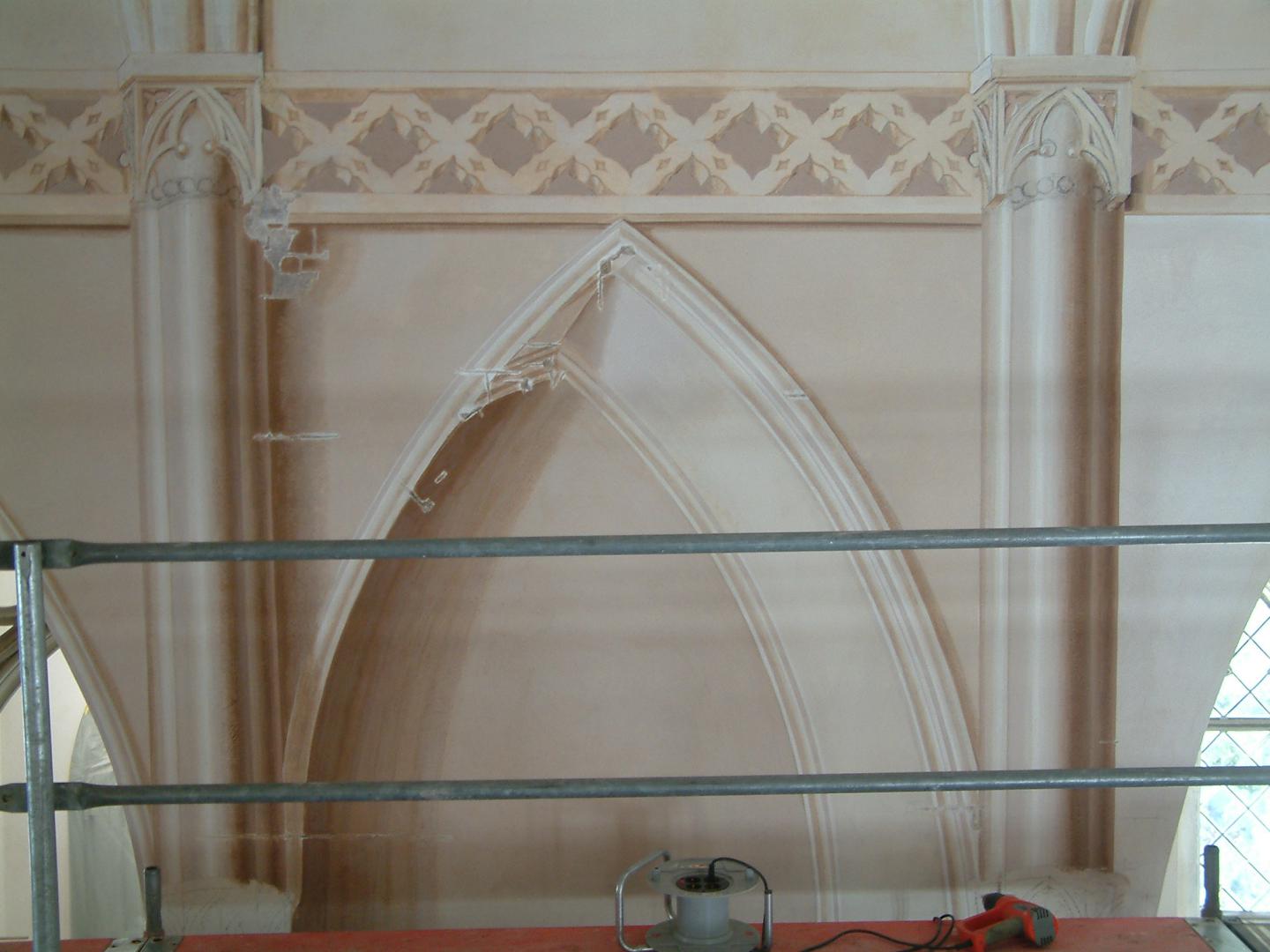 2007-09 Kirche in Paretz, Untersuchung, Teilfreilegung und Rekonstruktion der illusionistischen Ausmalung;